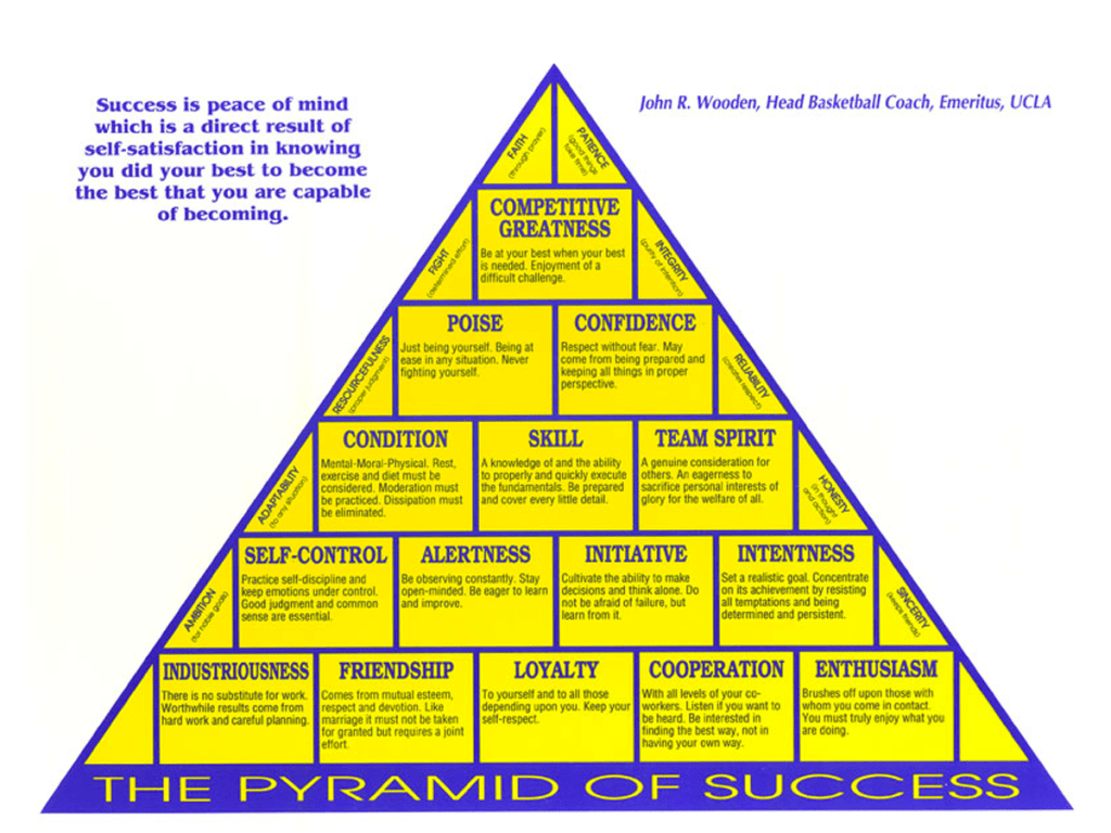Legendary UCLA men’s basketball coach John Wooden created the Pyramid of success that has been used by many winning teams and organisations. It focuses primarily on the internal, your own team, choices, and actions. You have no control over the outside world, but internally you have all of the control.