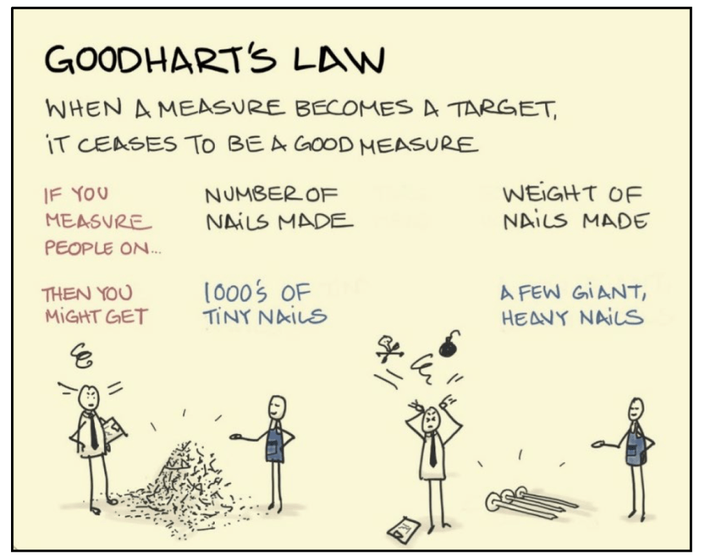 Goodhart’s Law simply says that when a measure becomes a target, it ceases to be a good measure.